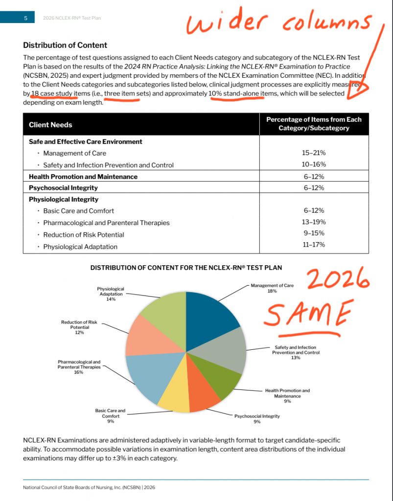 I compared the 2023 nclex test plan to the 2026 test plan to see if the content being tested on is the same. It’s basically the same with some minor additions or minor changes. I